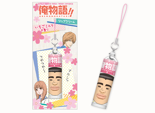 猛男の顔がデザインされた持ち運びに便利なストラップ型リップクリームです。